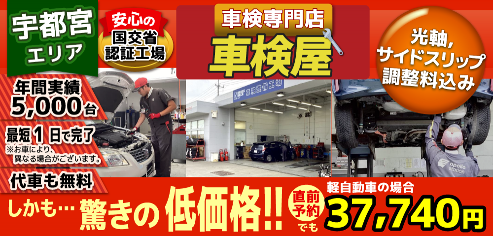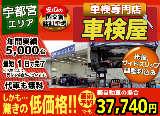 宇都宮・鹿沼・さくら市で車検37,740円~/特典1.5万円/壬生町,芳賀町,高根沢町,塩谷町,真岡市近く